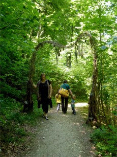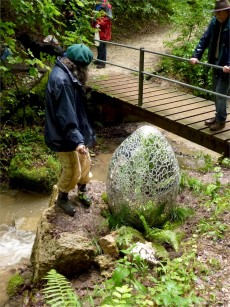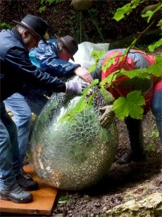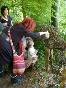 Trio SIEBENARTIG beim Abbau der Ausstellung dehors Station 4 von links: Karin Zimmerli; Lotti Walti; Yvonne Künzli